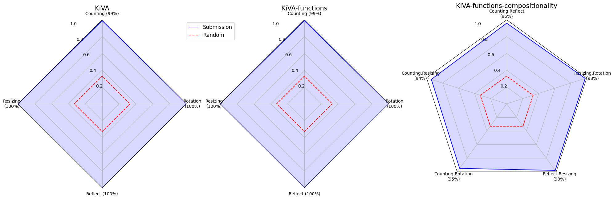 | Split | KiVA (Easy) | KiVA-func (Moderate) | KiVA-comp (Difficult) | Overall |